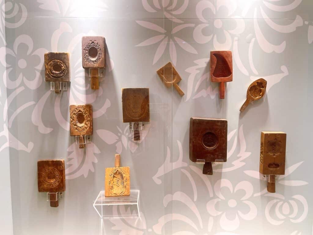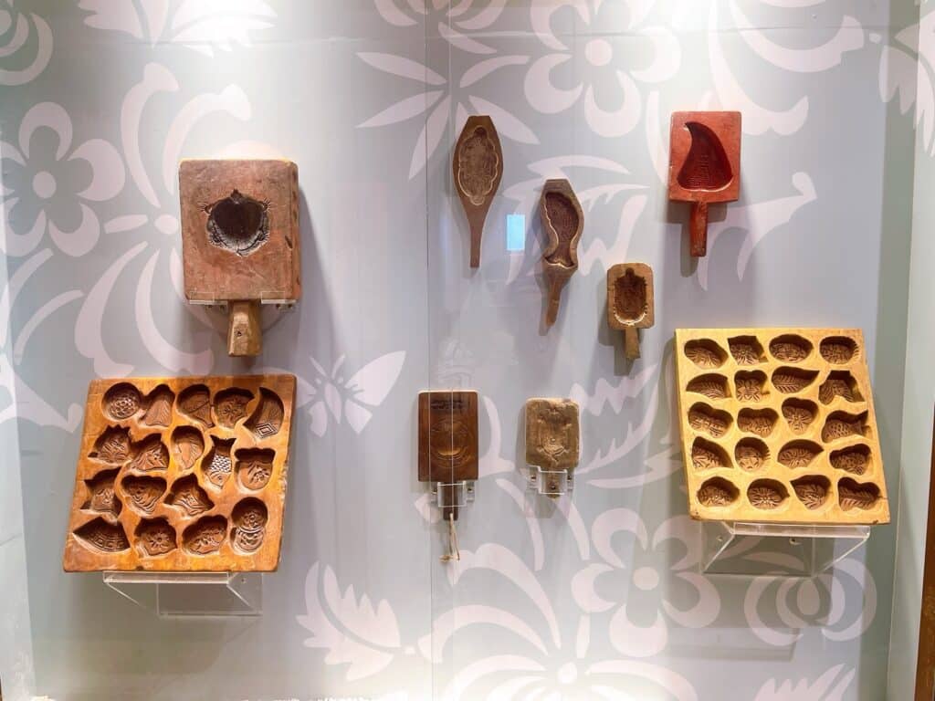 ▼ 在餅模展示區中典藏有早期製作中式糕餅的主要模具,結合工藝之美巧妙刻製的餅模圖樣,每個都代表不同的特殊意義,最古老的器具有將近300年歷史,非常具有紀念價值。
