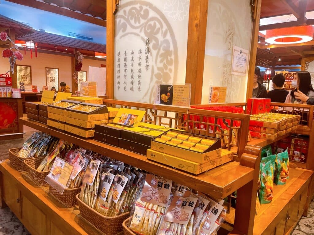 逛累了就可以回到主館一樓商品展售區,尋找美食以及可以帶回去送人的伴手禮,整體空間佈置得古色古香,販售許多來此必買的商品。
